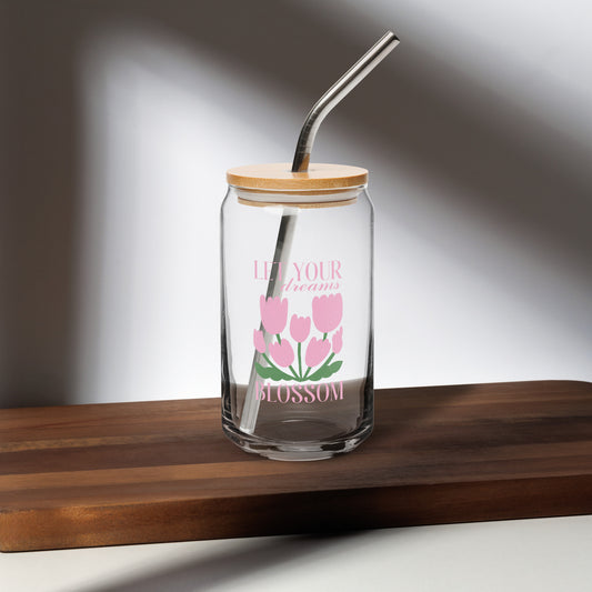 Let Your Dreams Blossom Glass Cup – 16oz Iced Coffee Cup