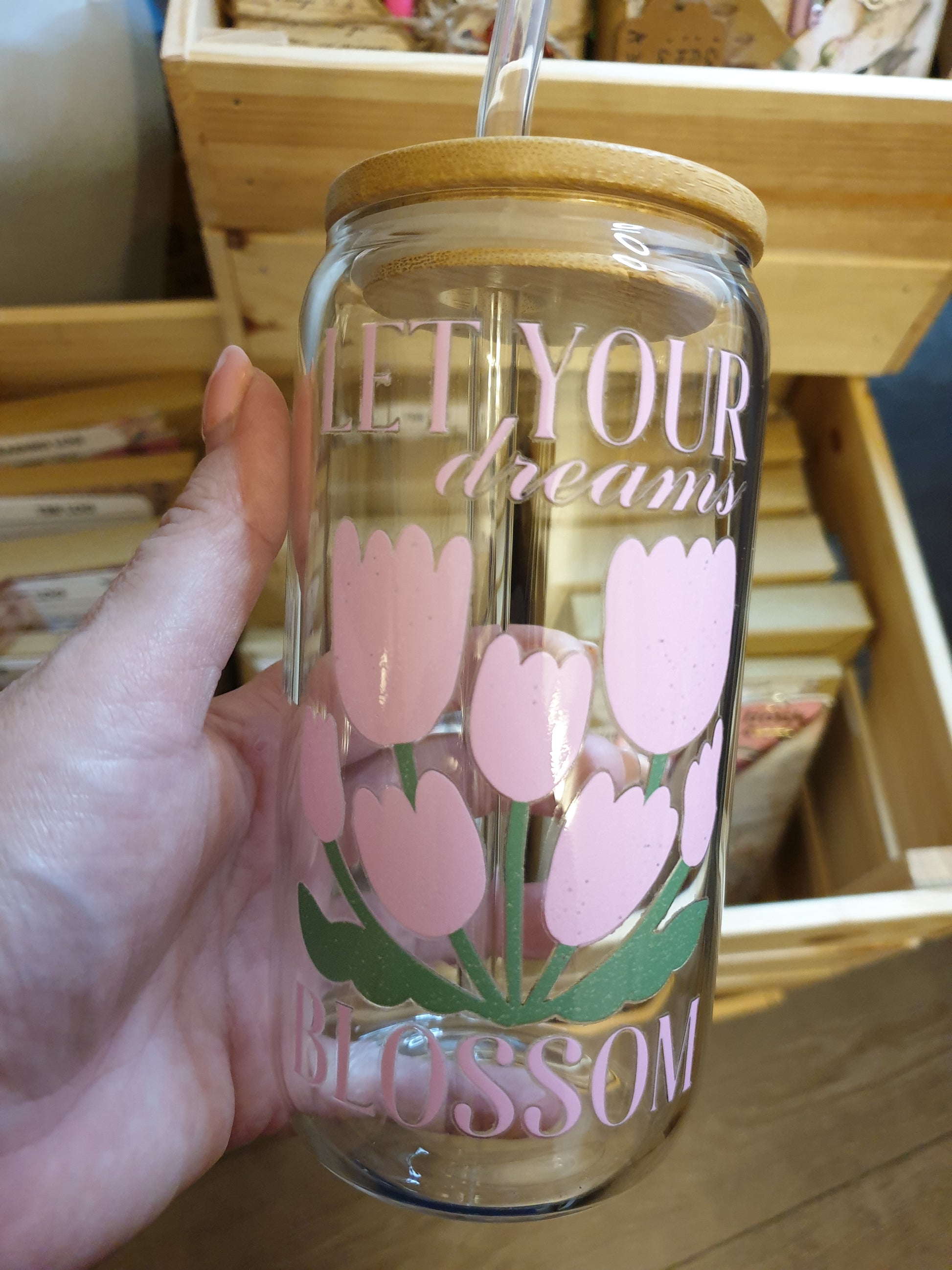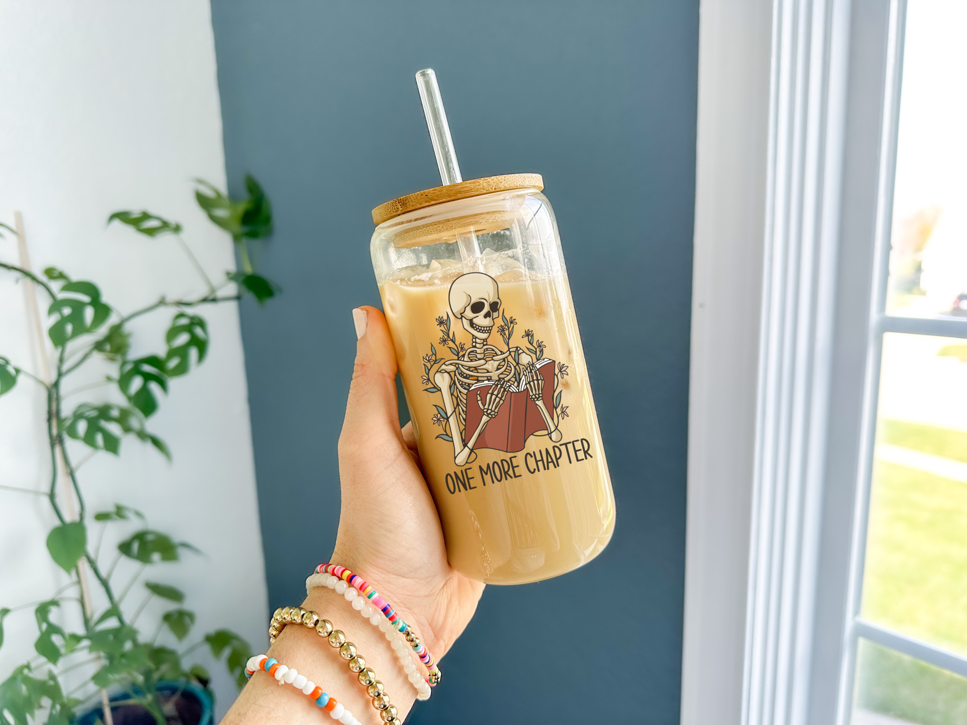 ✔ 1 16oz glass cup featuring my exclusive bookish design